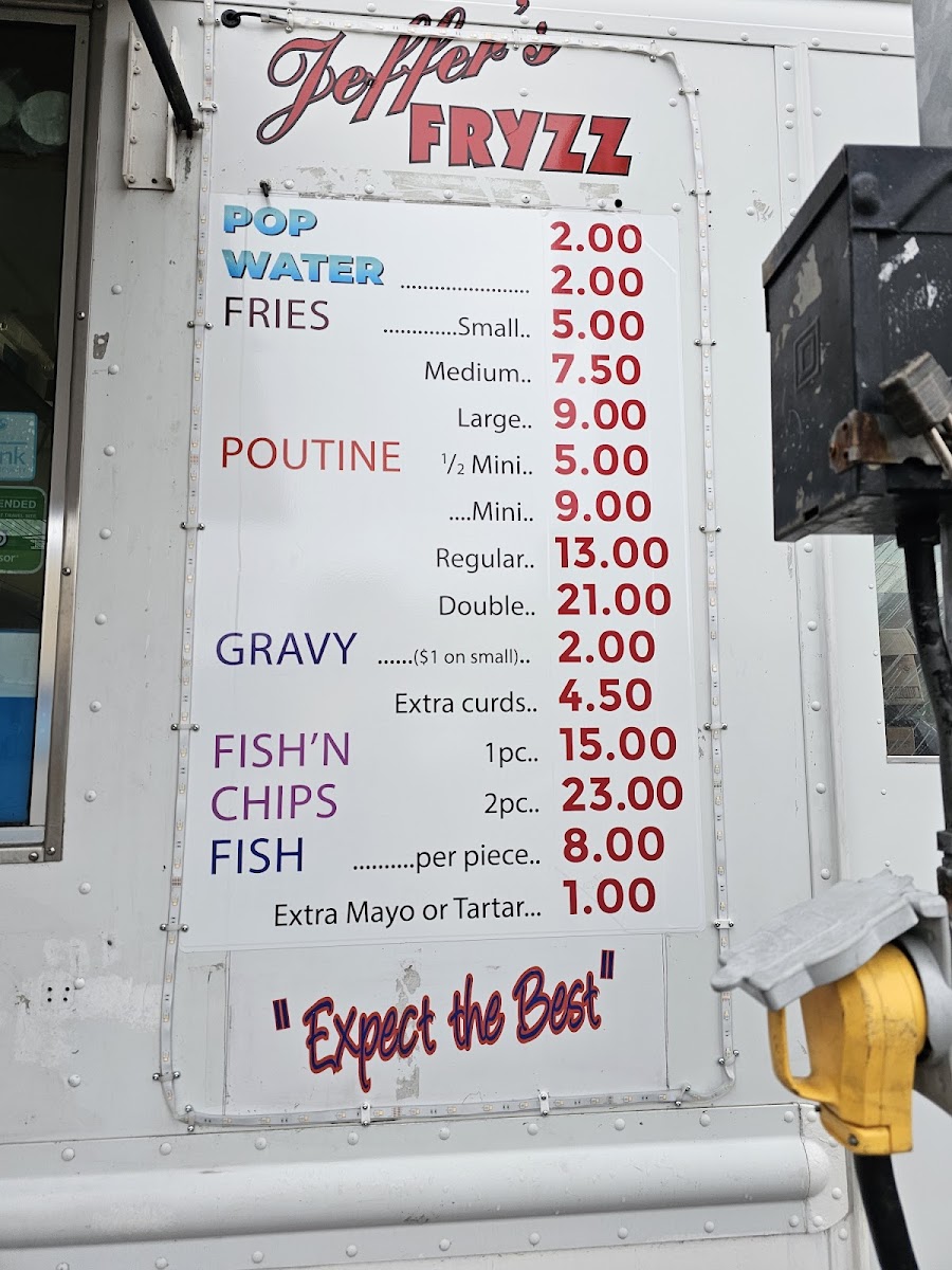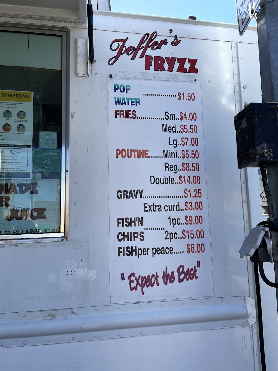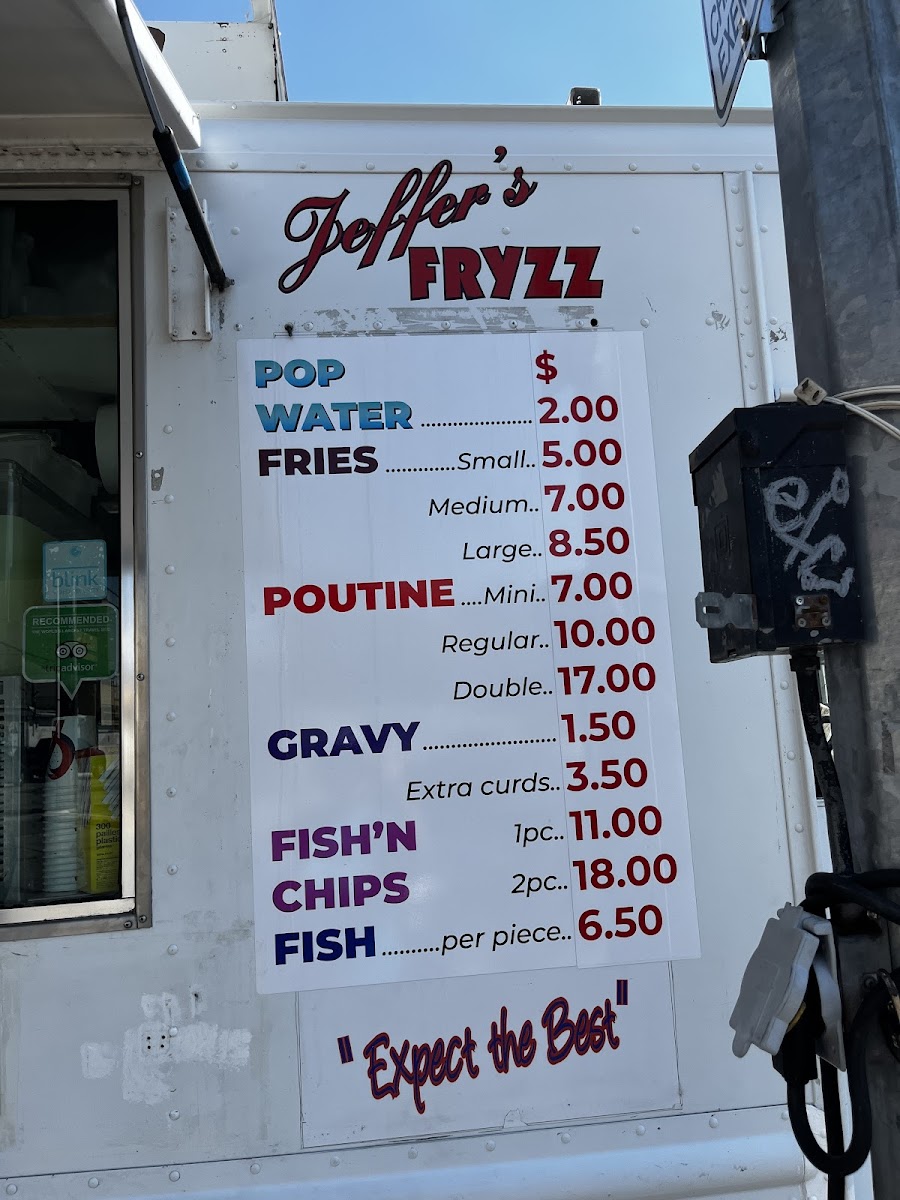 The menu at Jeffer's Fryzz in Penticton offers a satisfying selection of comfort food, perfect for those craving a hearty meal. One of the standout items is the Poutine, a classic Canadian dish featuring crispy fries topped with rich gravy and cheese curds-an indulgent and savory treat that doesn't disappoint. For a lighter option, the 2pcs Fish and Chips delivers perfectly battered fish paired with golden, crispy fries. The generous portions make it a great choice for anyone looking to enjoy a classic meal with a bit of extra crunch. The Fries and Smokey is another must-try, offering a smoky twist on traditional fries, bringing a burst of flavor that's both unique and satisfying. Each dish is simple yet expertly prepared, showcasing Jeffer's Fryzz’s commitment to quality and flavor. Whether you're craving something classic or a bit more adventurous, the menu has something for everyone.
